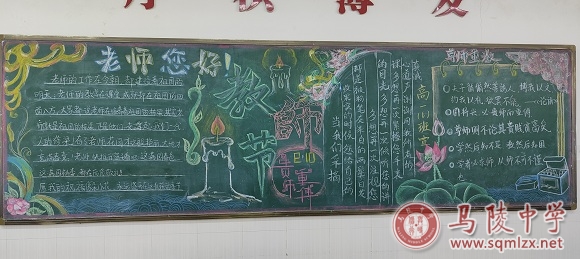 今年9月10日是我国第37个教师节,为表达对教师的感恩之情,颂扬教师事业,增进师生情感,同时丰富学生的校园文化生活,校团委联合各团支部举办庆祝教师节黑板报展评活动。