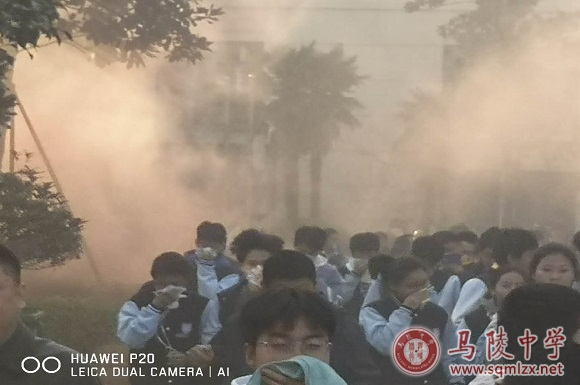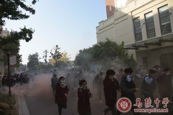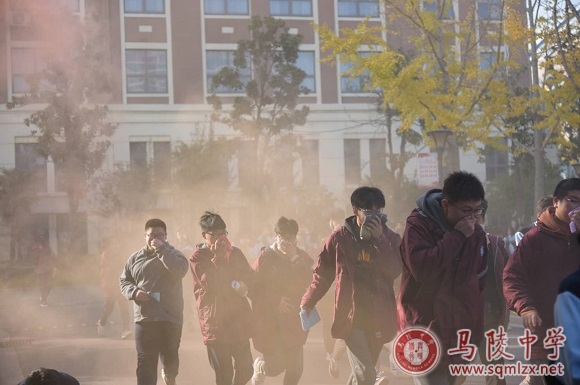 11月11日上午9:20,随着“警报声”响起,消防演练正式开始。同学们在各班老师的组织下,用湿毛巾捂住口鼻,猫着腰,分楼道,按照事先设定的疏散路线快速撤离。整个过程迅速、有序,4000余名师生安全疏散到指定地点。