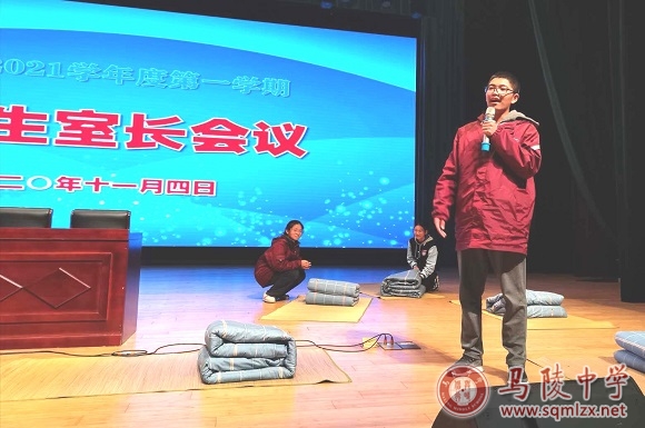 最后,褚俊清作总结讲话。他再次强调了室长的职责和纽带作用,并就寝室内务、卫生、文化、安全、秩序、文明等方面作了细化强调。要求室长会后,组织召开寝室会议,传达会议的精神和要求,增强寝室成员的自我管理意识,严格遵守住宿生制度与纪律,让宿舍成为温馨的家。