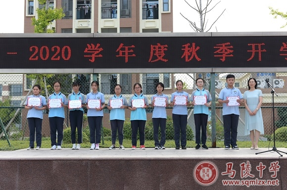 升旗仪式后,我校对优秀班干、优秀团干进行表彰。校长王丽梅、党委书记张美华为获奖学生颁发荣誉证书。