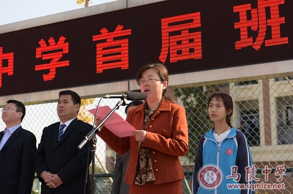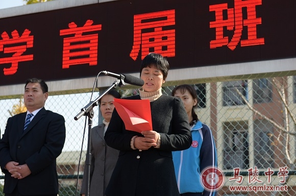 王丽梅校长致开幕辞,她说,班主任工作是一份艰辛的沉甸甸的责任,更是一份珍贵的甜蜜蜜的幸福,希望全校师生共同努力,向着学校未来发展的愿景——“教师愉快从教的家园”“学生高位发展的乐园”“宿迁高中教育的新高地”进发。