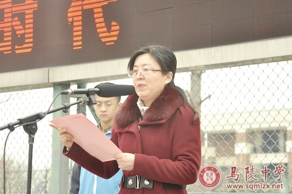 随后,校长王丽梅代表学校党政领导致新年贺词。王丽梅回顾了学校2017年的辉煌成绩,并展望了2018年的美好前景,她指出:2018年是我校提升教育教学质量、实现可持续发展的关键年。我们将进一步集中全体陵中人的智慧和力量,激发奋斗热情,围绕学校质量提升和特色打造,进一步“优机制、活要素;创模式、抓落实;健体系、显实效”,为建设优质品牌高中而奋斗。她号召全体师生,在新的一年里,携手同心、勇毅笃行,扬帆破浪、锐意创新,奋力践行陵中核心价值体系,共同为建设“市内一流、苏北领先、百姓满意”的品牌高中而奋斗,实现学校新的更大的跨越!