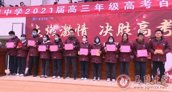 学生宣誓:“让我们众志成城,顽强拼搏,大战100天,苦干实干科学干,树立必胜信心,磨炼坚强意志,为了自己的美好前程,为了家长的殷切希望,为了中华民族的伟大复兴,去实现我们的愿望,放飞我们的梦想!”