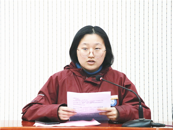 学生代表孙炜宏作了典型发言。她结合自己的学习感受提出在高三阶段同学们要学会接纳自己、调整自己和依靠爱的力量,得到了在场全体学生的认同和共鸣。