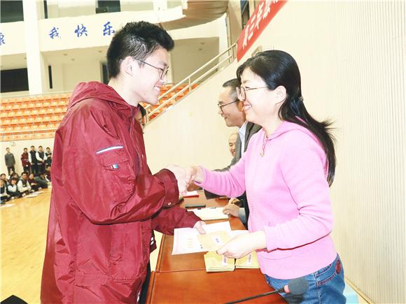 随后,高三年级一部年级组长冯卫峰宣读了表彰决定,王丽梅等为获奖学生颁奖。