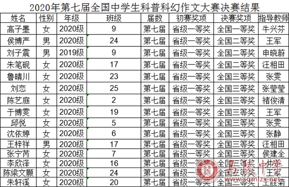 【喜报】全国科普科幻杯作文大赛是教育部确定的2020-2021学年面向中小学生开展的35项全国性竞赛活动中的一项重大赛事,在汪相田主任的尽心统筹下,在三个年级备课组长的精心组织下,在各位语文老师的积极参与下,今年全国科普科幻杯成绩取得重大突破!
