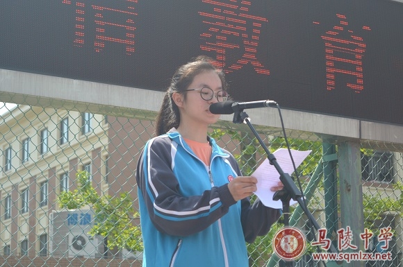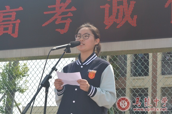 高三(17)班吴迪作国旗下讲话。她号召大家诚信应考,凭真才实学发挥出色水平,以昂扬姿态展现各自风采。她代表全体同学立下誓言:今年的六月,高三必将横刀立马,锐不可当,圆梦高考,再创辉煌。