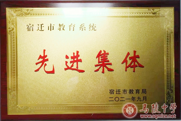 9月14日,马陵中学荣获宿迁市教育局颁发的“宿迁市教育系统先进集体”荣誉称号,刘琳同志荣获“宿迁市教育系统优秀教育工作者”荣誉称号,马品敢、李宝平、蒋守朋、蔡倩、苏晓同志荣获“市直教育系统优秀教育工作者”荣誉称号。