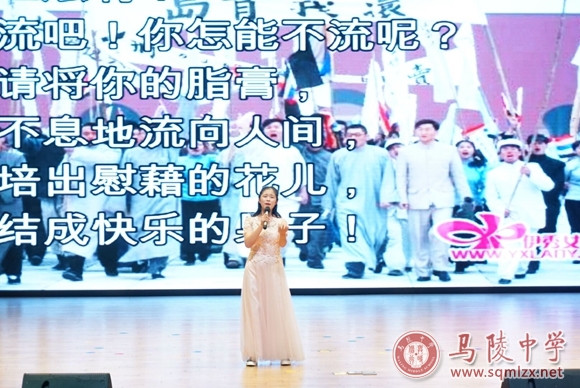 伴随着美妙的音乐,参赛选手们意气风发倾情朗诵,有慷慨激昂的朗诵,低沉婉转的诵读,也有充满诗情画意的诉说。选手们用朗诵诠释对诗文的理解,用热血点燃青春,用激情澎湃的青春为祖国献礼,彰显新时代陵中学子的青春风采。