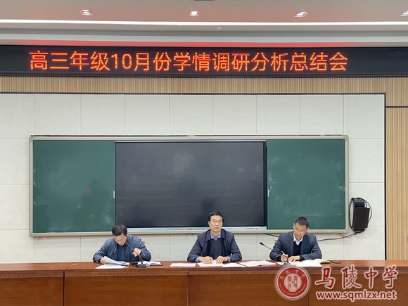 10月21日下午,马陵中学高三年级在西阶梯教室召开10月份学情调研分析总结会。副校长杨忠平,高三年级一部主任朱卫、二部主任李明,高三年级全体教师参加了会议。杨忠平主持了本次会议。