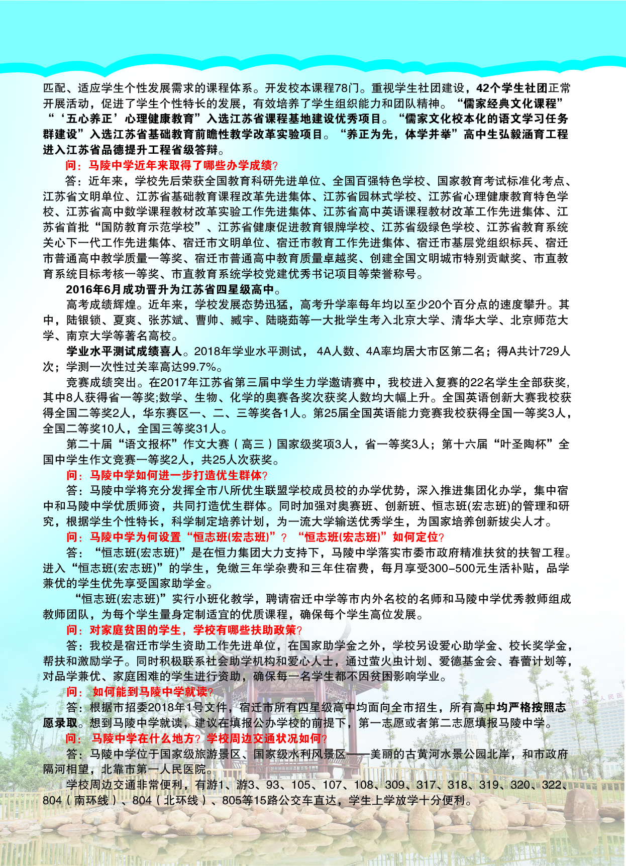 问:马陵中学为何设置恒志班(宏志班)?恒志班(宏志班)如何定位?
