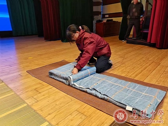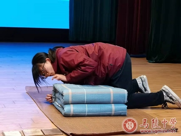 会议上,卢帅 、孙奕昕、许皓诺、陈业祝、张玉晗、孙雅涵、曹天晴、司一鸣同学进行了叠被子表演,一番熟练操作后,一方方“豆腐块”便呈现在大家面前,赢得了阵阵掌声。