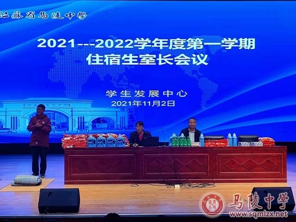 蒋守朋首先总结了开学以来宿舍常规管理工作。一是表彰优秀宿舍,给予生活用品奖励;二是指出存在问题:个别宿舍晚就寝时存在讲话、看课外书等违纪行为;宿舍内务整理良莠不齐等。接着,围绕就寝纪律、卫生、内务、安全等方面进行了详细指导和要求,鼓励室长们将宿舍管理工作落到实处,带领本宿舍同学齐抓共管、遵纪守律、文明就寝。