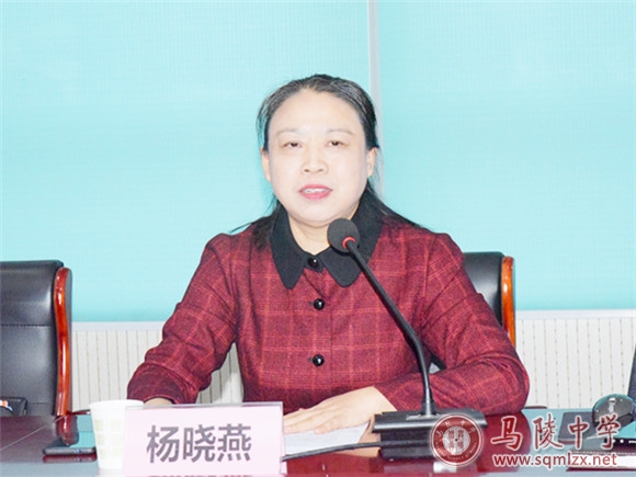 最后杨晓燕主任做总结讲话。她再次肯定了马陵中学在教学管理、集体备课等教学工作上的顶真务实的作风以及师生良好的精神状态,并对马陵中学后面的发展提出希望和要求:要加强学校管理体制建设,进一步深化课堂教学方式的变革,进一步加强教师队伍建设。