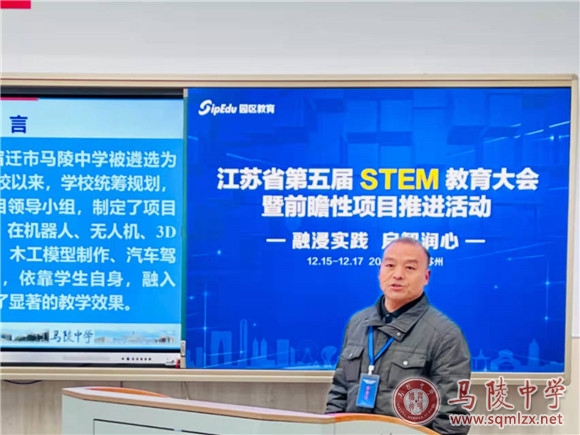 12月15日—17日,江苏省第五届STEM教育大会暨前瞻性项目推进活动在苏州工业园区星海实验学校举办。全省一共有14所高中作经验介绍,我校通用技术学科李伟成老师代表宿迁市高中学校在大会上作经验介绍。