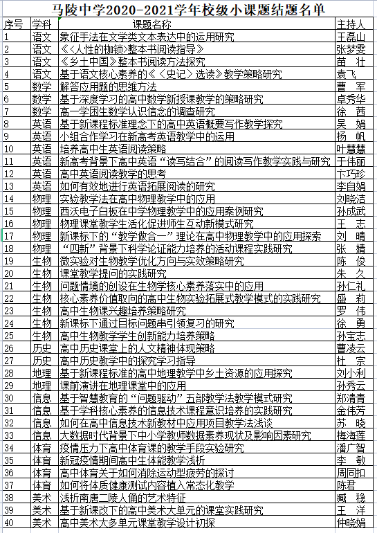 2020-2021学年度校级小课题结题名单