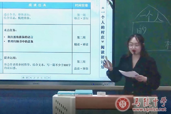 张紫葳老师执教的是《一个人的村庄》课前导引课,由课前调研、作家眼中的村庄、读法指导和制订阅读计划等环节,激发兴趣,整体感知,由浅入深,取得了很好的导引和导读效果。