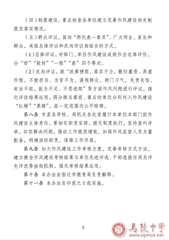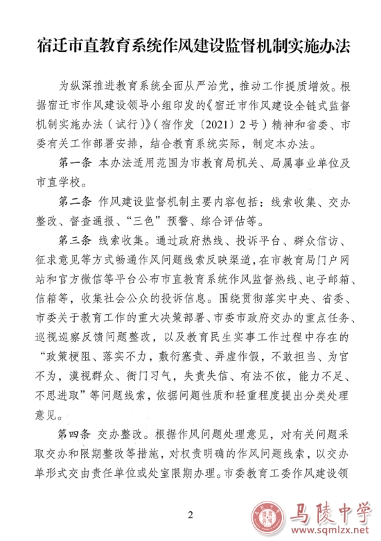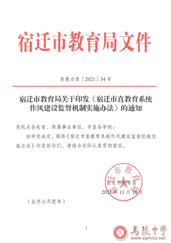 宿迁市教育局关于印发《宿迁市市直教育系统作风建设监督实施办法》的通知
