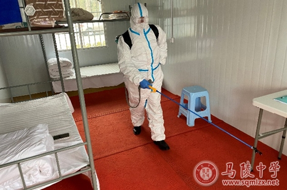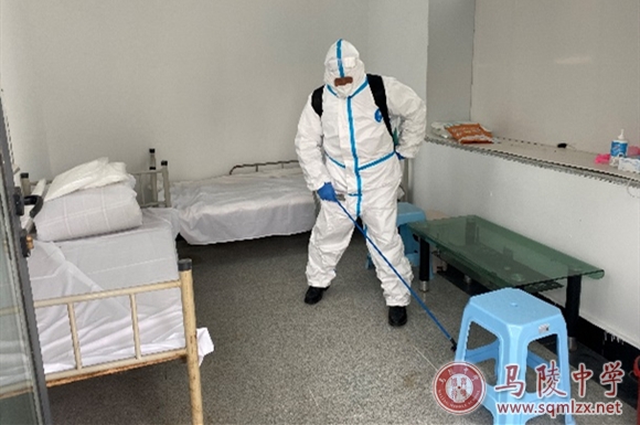 3.学生被监护人接走后,校医通知环境消杀人员对临时隔离点进行消毒,并对自身防护用品进行规范处理。