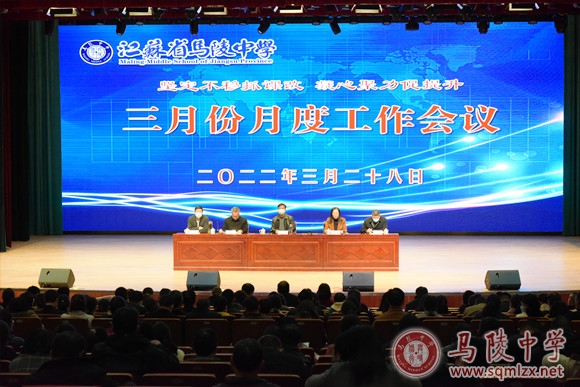 3月28日下午,马陵中学在艺术楼报告厅召开“坚定不移抓课改 凝心聚力促提升”主题月度工作会议,全体教职工参加了会议。会议由校党委书记张美华主持。