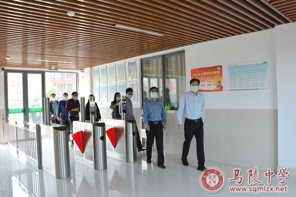 闫辉先后来到门卫处、高三年级、学生宿舍等处,详细检查、仔细询问,并听取了校长宋志平就学校疫情防控、高三师生学习生活、线上教学、学校发展等方面情况的汇报。