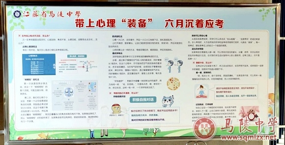 与此同时,高三教学区布置了多块考前心理专题展板、印发心理小报,以满满的心理“锦囊”助高三学子一臂之力。