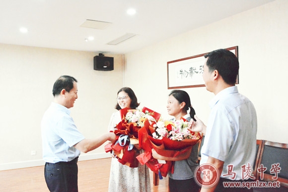 王邦柱代表市教工委、市教育局向马陵中学徐美荣、戚品红两位老师送上了鲜花和慰问金,并表达了教师节真挚的祝福。