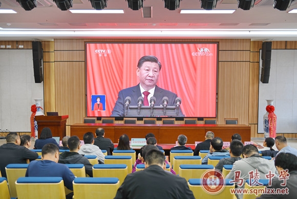 金秋十月,党的二十大胜利召开。10月16日上午,马陵中学组织全体教干观看开幕会盛况,聆听习近平总书记的报告。
