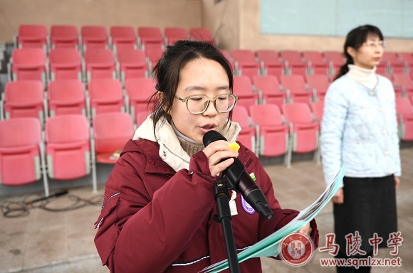 少年负壮气,奋烈自有时。高三19班任子璇作为学生代表发言,她首先向高一高二的学弟学妹们寄语:莫向光阴惰寸功,现在脚下的每一个足迹、脸上的每一滴汗水都会在将来回应你的期待。接着,她向并肩战斗的高三同学们呼吁:用努力拼搏,用坚定无畏,用永不服输的自己去定义青春!