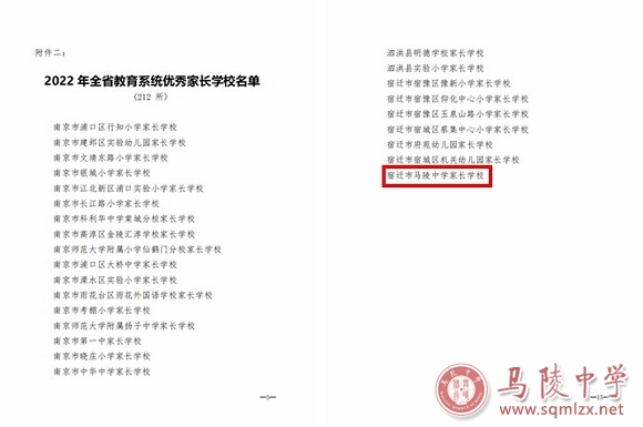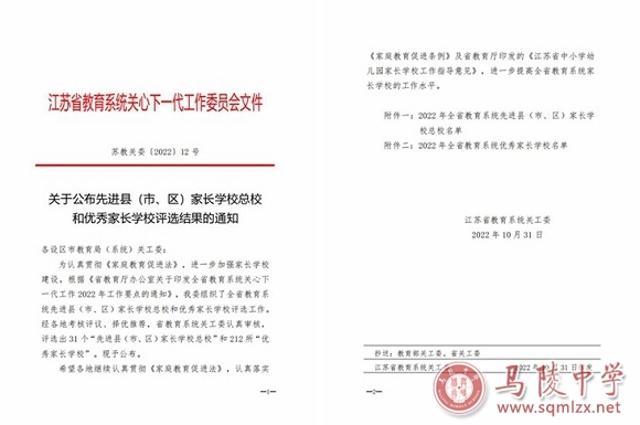 日前,江苏省教育系统关工委公布了2022年全省教育系统优秀家长学校名单,我校以优异成绩获评“江苏省优秀家长学校”称号。