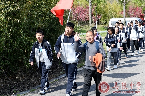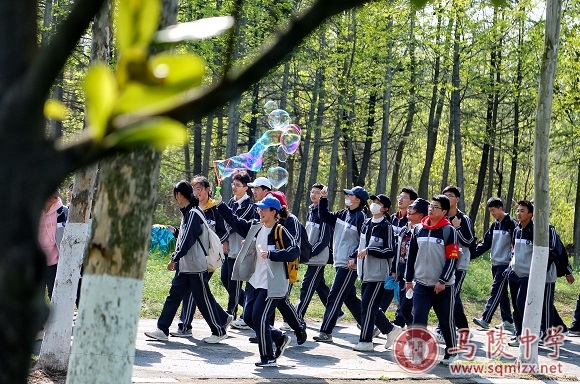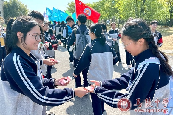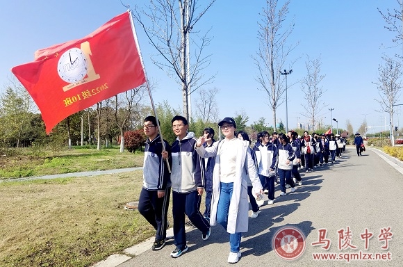 在班主任和任课老师的带领下,同学们仰首挺胸,步伐整齐,口号响亮,一路上充满了欢声笑语,尽显青春活力。此刻,马陵学子成为春光里最美的风景线。远足队伍经过发展大道运河桥、奥体中心、最后到达三台山森林公园。在远足路途中分别设置了5个打卡点,同学们经过打卡点都会收到一张纪念卡片,鼓励大家坚持到底。