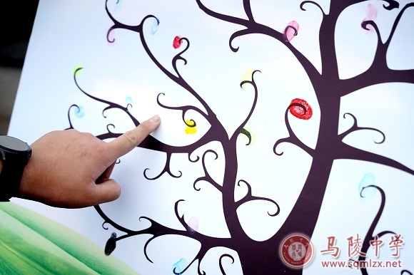 “指纹树”集体画,准备了大块的KT板,板上印有一棵树的形状,同学们要结合“24项品格优势”,在相应的树枝上按上自己专属的指印,最终形成一棵五彩缤纷的“指纹树。”