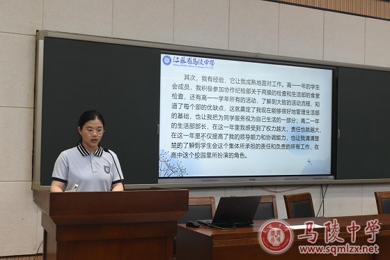 经过严格有序的投票、计票,本次大会选出马陵中学新一届学生会主席团。具体分工如下:学生会主席高诗语、学生会副主席苏振轩和邱雨萱、纪检部部长张珺姿、生活部部长孙子轩、组织部部长吴雨润。