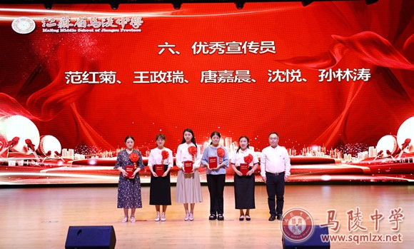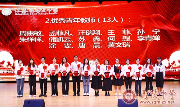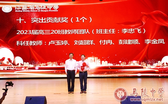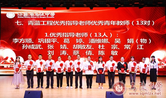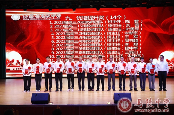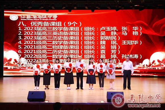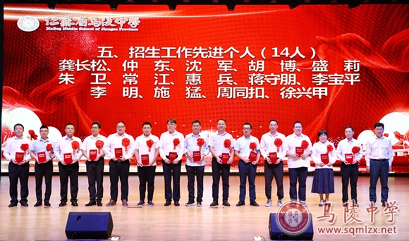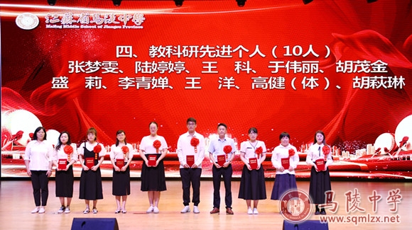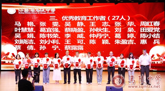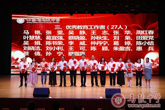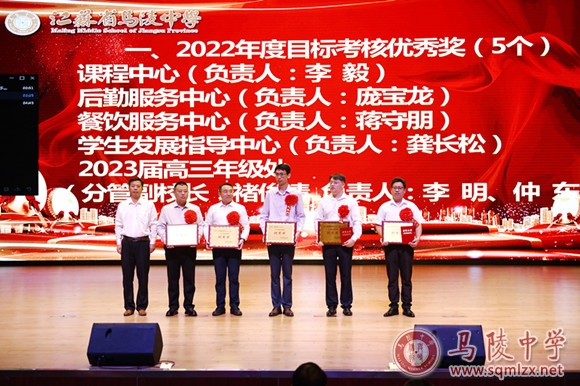 学校领导为获得年度目标考核优秀奖处室、优秀班主任、优秀教育工作者、教科研先进个人、招生工作先进个人、优秀宣传员、青蓝工程优秀指导老师、青蓝工程优秀青年教师、优秀备课组、优培提升奖和突出贡献奖等集体和个人颁奖。