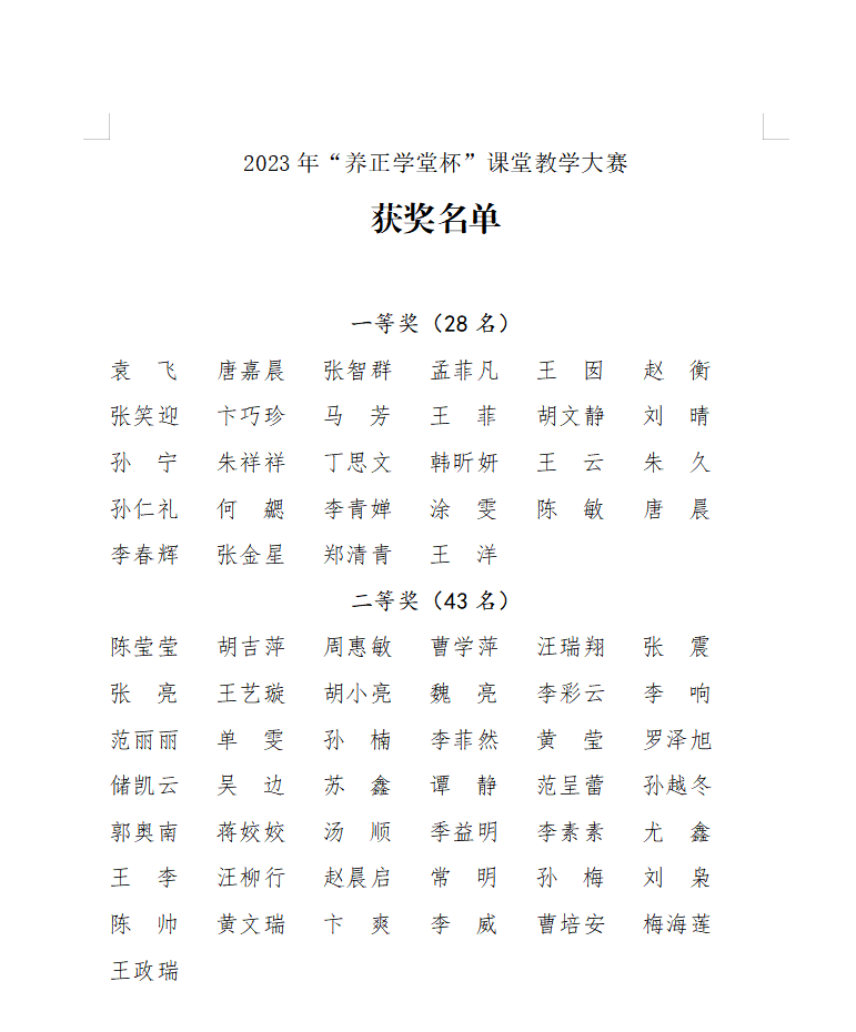 马陵中学2023年“养正学堂杯”课堂教学大赛获奖名单