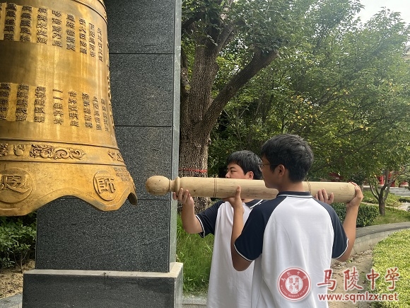 随后举行撞钟鸣警仪式,14年的浴血抗战,革命先辈们用自己的鲜血和生命捍卫了祖国的领土和尊严,学生代表敲响警示钟,在14下钟声里,全体师生肃立默哀,向先烈致敬!