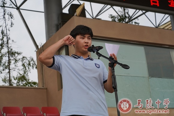 学生代表高二15班伍凌锐同学作国旗下演讲,号召同学们要勿忘国耻、振兴中华,为中华之崛起而读书,为祖国之繁荣而努力。