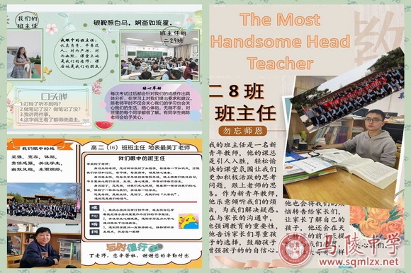 各班学生各抒己见,根据班主任的形象和管理风格,设计风采展示海报,将自己心目中班主任的形象以别样的形式展现,配之以自己想对班主任说的话、班主任的暖心举动、教学成绩、口头禅等,体现出对班主任含蓄深沉的仰慕之情,展现了班主任在学生心中的形象。