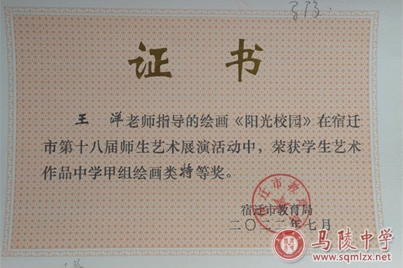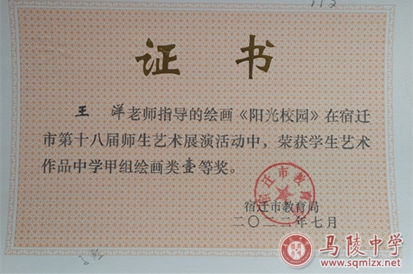 1998年毕业于南京师范大学书法专业,宿迁市美术骨干教师,江苏省优秀特长生指导教师,宿迁市美术优课一等奖,江苏省一师一优课一等奖,论文多次获省市级奖项等。