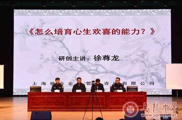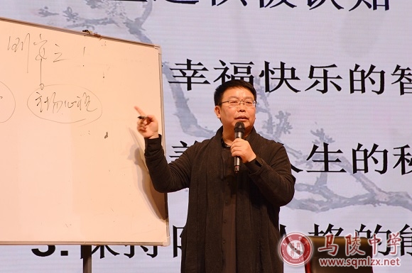 讲座伊始,徐教授询问在座的学生:如何理解孔子讲的“既来之,则安之”?同学们兴致盎然,众说纷纭。他指出,“安”字体现了一种主场思维。我们既然来到这个世界上,就要把这个世界当作人生的主场。马陵学子要与学校、教师、同学们融为一体,与学校的一草一木融为一体,将学校看做自己生命成长的主场。他强调,每一位同学都有自己的使命,我们要找到自己的使命。拥有主场心理的人具备建设性人格,遇事不抱怨,会出于本能地思考解决问题的办法。