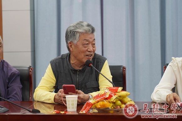 首先原宿城区教育局局长、马陵中学老校长陈迅代表老教师为学校发展献计献策。老校长对学校不断提高的高考成绩和日益成熟的师资队伍感到欣慰,同时他表示所有老同志将一如既往关注关心学校发展,预祝学校未来更好。