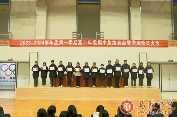 少年奋发,银鞍白马;少年逐梦,飒沓流星。为表彰先进,鼓励同学,11月23日晚,马陵中学高二年级在校体育馆举办了期中总结表彰大会暨学测动员会。会议由高二年级分管校领导、副校长蔡之刚,一部主任盛莉,二部主任朱卫,高二年级全体学生和班主任参加了大会。大会共有四项议程。