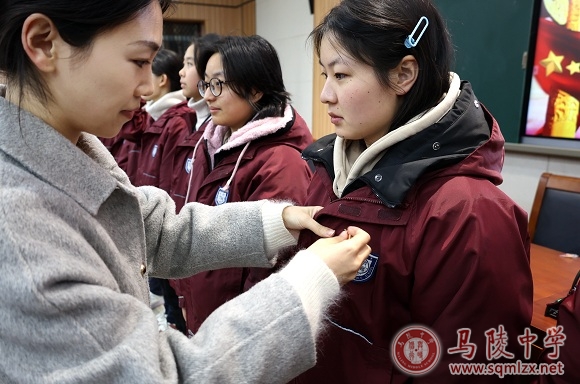 团委委员沈悦为新团员颁发团员证并佩戴团徽。从戴上团徽的这一刻起,他们将用更高的标准要求自己,认清自己肩负的责任,用实际行动来表明自己无愧于共青团员这个光荣称号。