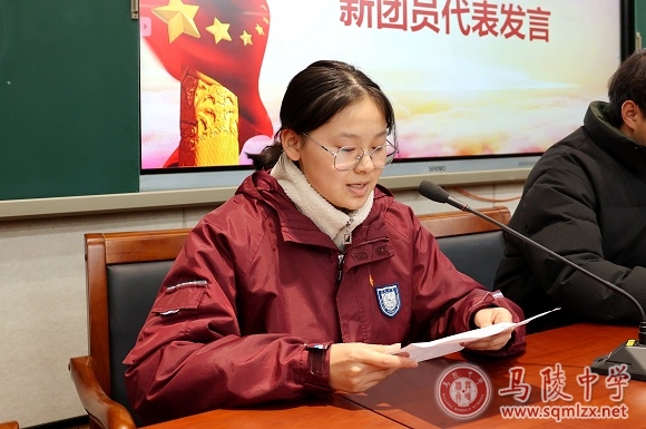 宣誓结束后,卓凯娣同学作为新团员代表发言。她表示:作为新团员应当了解自己肩负的重任,奋力向下一个里程碑进发。今后将继承发扬共青团的优良传统,在学校活动和班级体中起模范带头作用,锻炼本领,拼搏奋进,立志做有理想、敢担当、能吃苦、肯奋斗的新时代好青年。