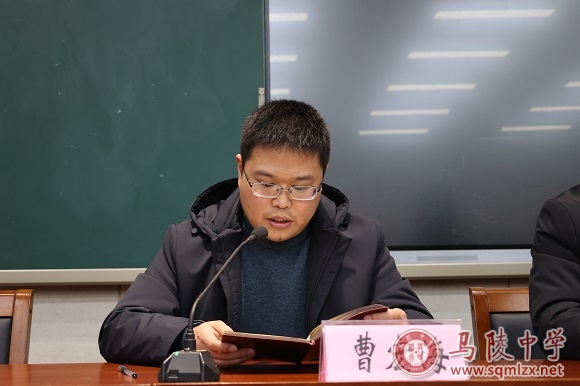 为总结教学得失,更好迎接全市第一次模拟考试,1月2日下午,高三年级在阶梯教室举行了12月调研测试成绩分析会。此次分析会由高三年级二部主任曹宏海主持。党委书记、校长宋志平出席会议并作重要指示。高三分管校领导、工会主席袁金花,高三年级一部主任胡博,全体高三教师参加了会议。