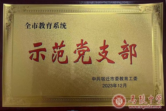 近日,马陵中学党委第一支部被中共宿迁市委教育工委评为2023年度全市教育系统“示范党支部”。