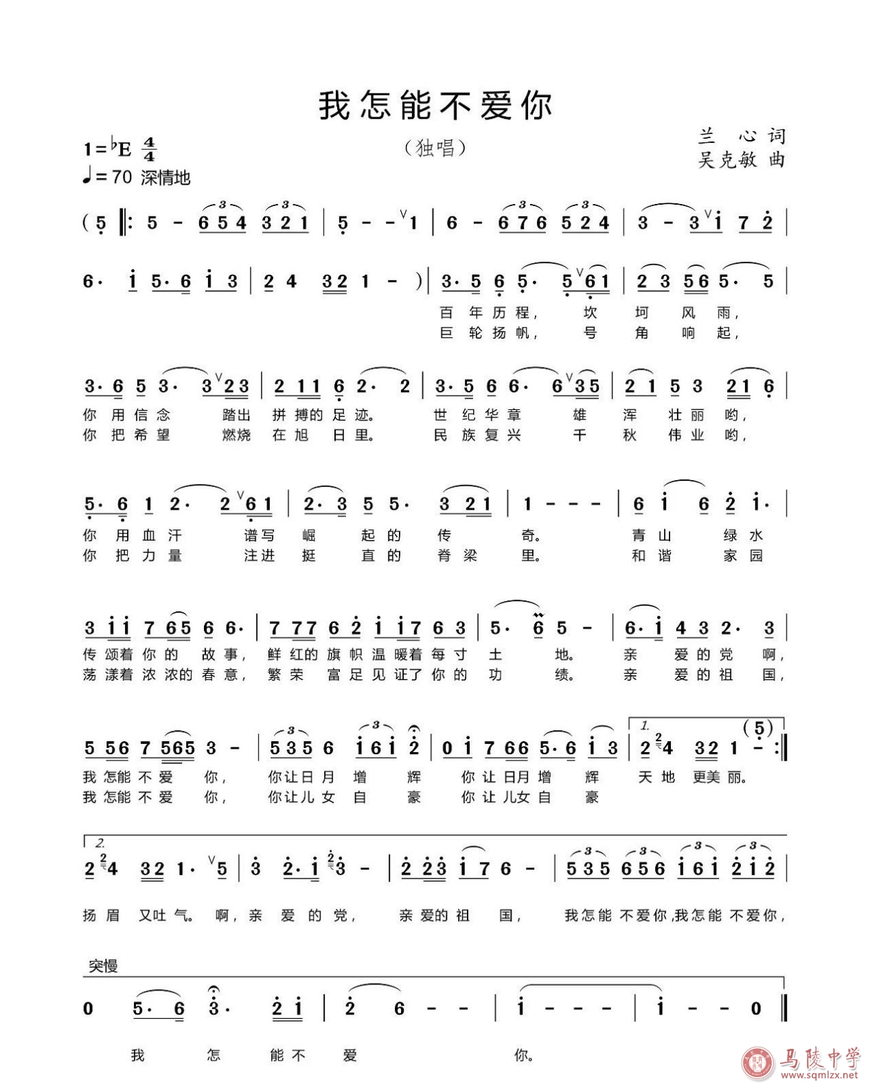 我校青年教师王政瑞演绎的歌曲《我怎能不爱你》,表达了宿迁市音乐工作者永远热爱党,永远跟党走的心声。《我怎能不爱你》由兰心作词,吴克敏作曲,是宿迁音协的原创歌曲。作品充满正能量,歌词朴实无华,旋律婉转深情,特别是旋律中运用了三连音的节奏,把人民对党和祖国无比热爱的真挚感情推向了高潮。正像歌中所唱的那样:“亲爱的党,亲爱的祖国,我怎能不爱你”! 王政瑞老师的美声演唱大气、细腻,把歌曲表达的情感发挥得淋漓尽致。
