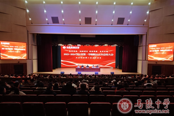 2023年,马陵中学负重前行、守正创新,落实立德树人根本任务,为党育人、为国育才,在实干中出业绩,于变局中开新局,事业高位发展,高考再创辉煌。为总结成绩,部署下一步工作,1月26日晚上,马陵中学召开2023-2024学年度第一学期期末总结会议。会议以“总结经验,砥砺前行;团结拼搏,追求卓越”为主题,全体教职工参加了会议,会议由教学总监张美华主持。