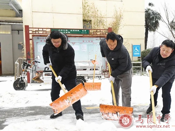 新春伊始,霰雪霏霏。开学在即,一场不期而至的大雪装点校园银装素裹,同时给开学工作带来极大的不便。为消除安全隐患,保障开学工作顺利进行,2月21日下午,在党委书记、校长宋志平带领下,马陵中学干部职工开展清雪除冰行动。