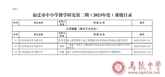 近日,根据《关于开展全市中小学教学研究第二期课题申报工作的通知》文件精神,在学校和个人申报的基础上,各县(区)初评,宿迁市中小学教学研究室组织专家对各县(区)申报的课题进行了评审,宿迁市中小学教学研究室在其官方网站公示了评审结果。